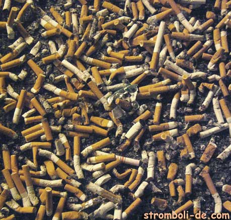 Der Aschenbecher im Eingangsbereich einer Wiesbadener Klinik offenbart, dass die Patienten kaum noch Zigarettten ohne Filter rauchen.