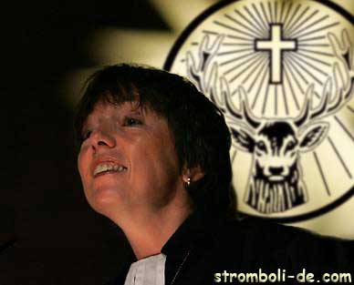 wesentlich höher. Liebe Margot Käßmann, bei aller Begeisterung hier doch noch ein paar Tipps von der stromboli-Redaktion für das nächste Mal: Jesus verwandelte Wassser nicht in Nordhäuser Doppelkorn, es gibt auch keine blauen Engel und am Schluss sagt man Amen und nicht Prost! |