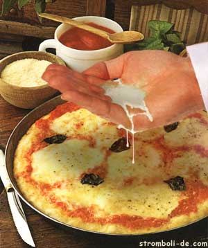 Die Pizza wird mit einem Schuss Sahne verfeinert. Bitte beachten: die Sahne