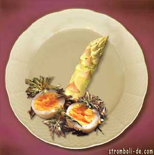 Phantasie. Sein knackiger Spargel, der geschmackvoll mit Eiern und