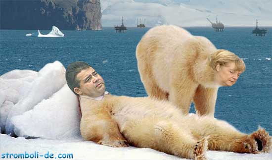 Unerschrocken und tatkräftig kämpfen Angela Merkel und Sigmar Gabriel in Grönland gegen den Klimawandel