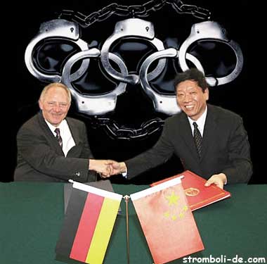 MENSCHENRECHTSVERLETZUNGEN MIT AUGENMASS Schäuble verteidigt seine chinesischen Vorbilder gegen die zunehmende Kritik durch die westliche Presse und ruft zu mehr Respekt im Umgang mit diesem Land auf.